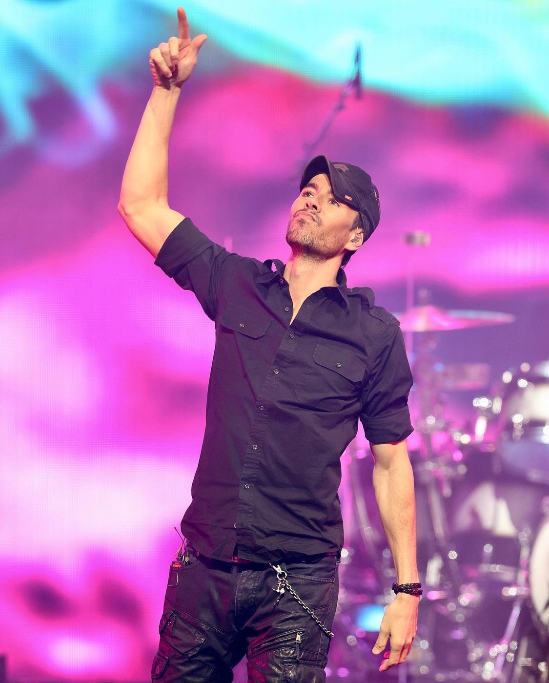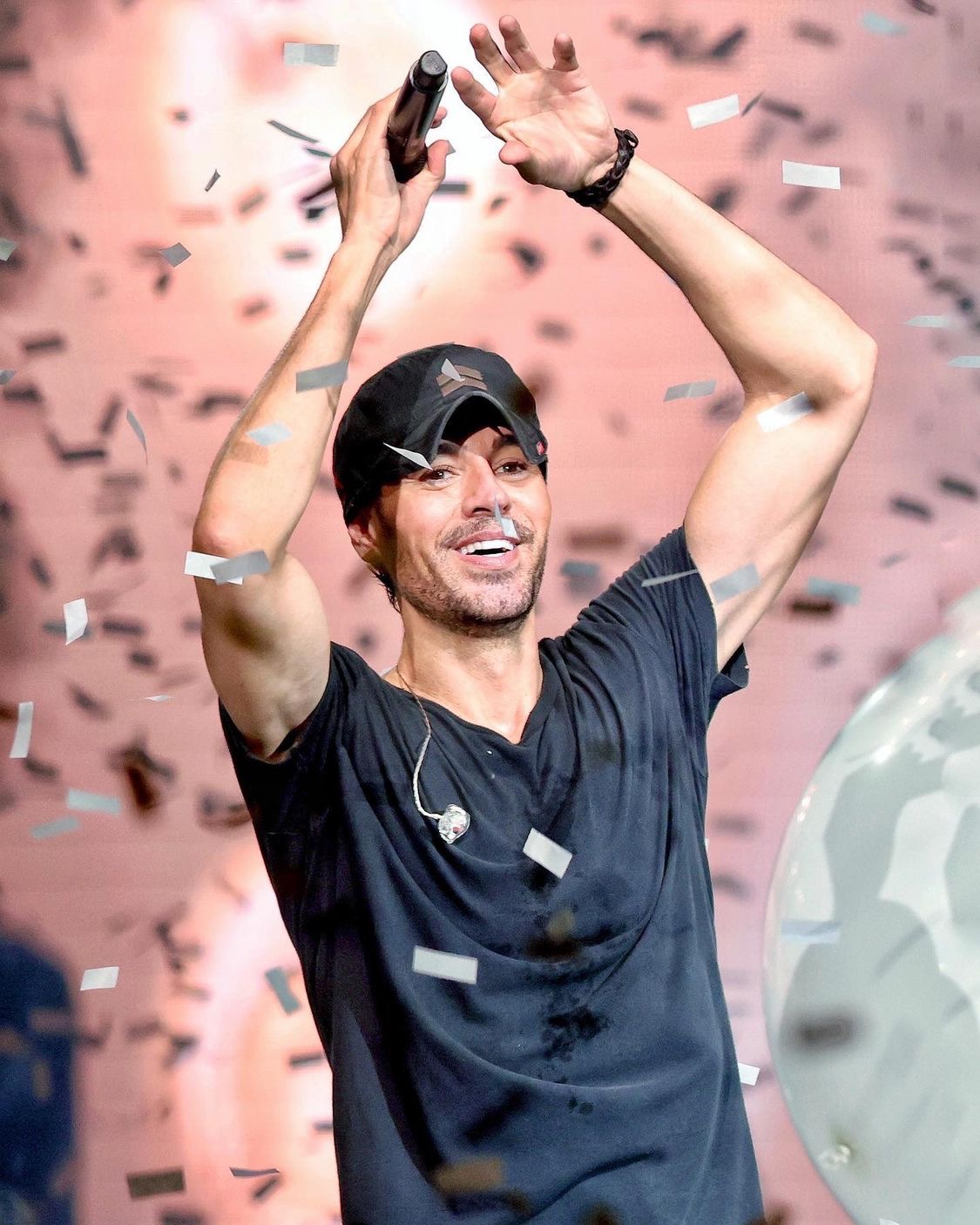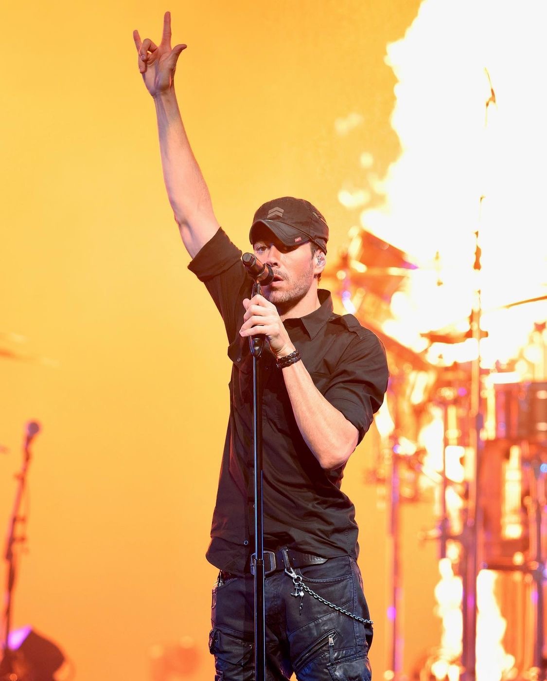 Enrique’s set is complete with fire, confetti & balloons.